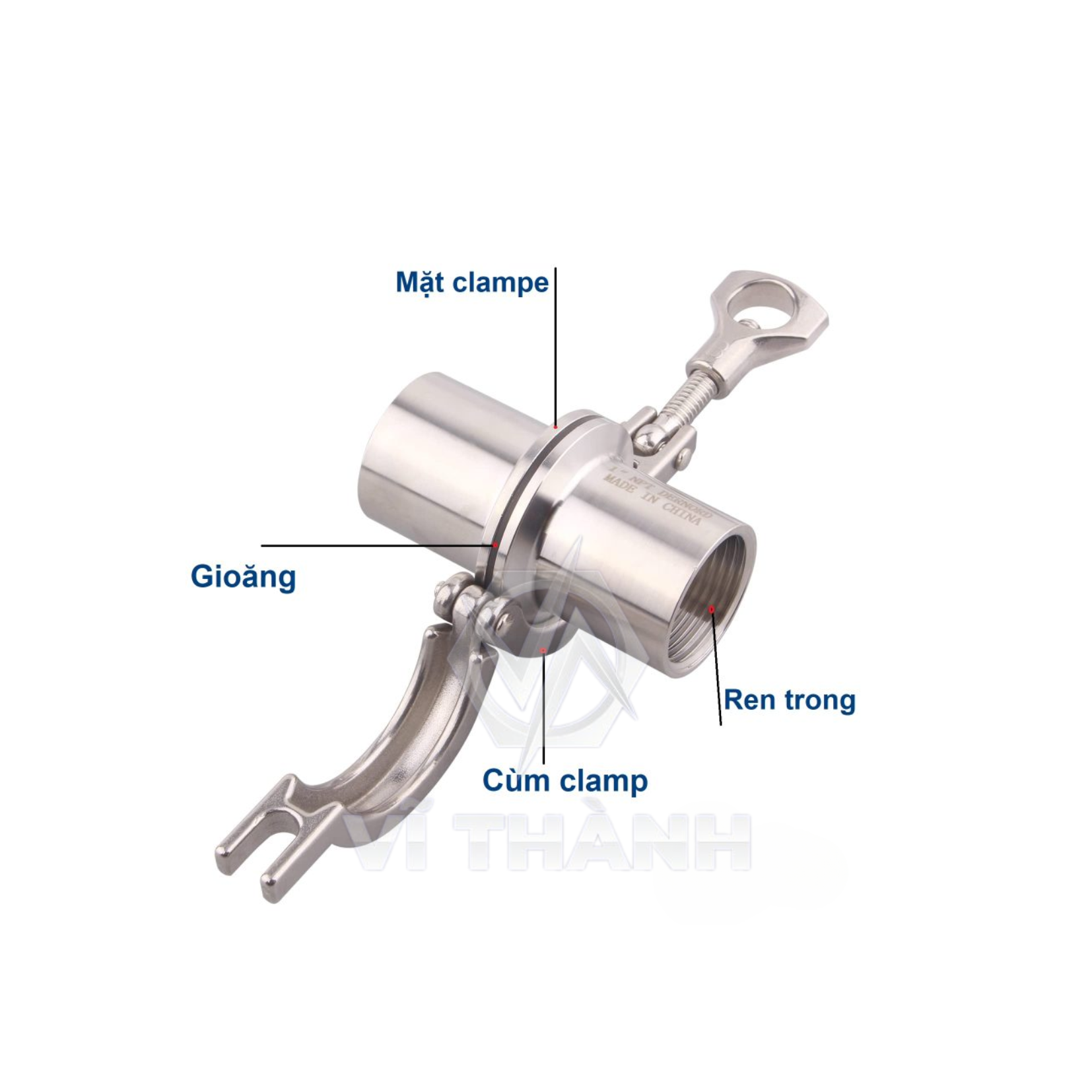 Bộ clamp ren trong vi sinh là một bộ phụ kiện dùng để tạo ra một điểm kết nối tháo lắp nhanh (clamp) ở một đầu và một đầu nối ren trong ở đầu còn lại. Nó cho phép tích hợp các thiết bị có ren ngoài vào một hệ thống đường ống vi sinh tiêu chuẩn.